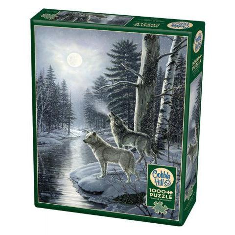 Hear the thundering howl of the leader as he calls the wolf pack to join him by the icy stream. It's time to hunt and the pack is needed to succeed in this snow covered forest. Wolves by Moonlight is a chilling 1000 piece puzzle.